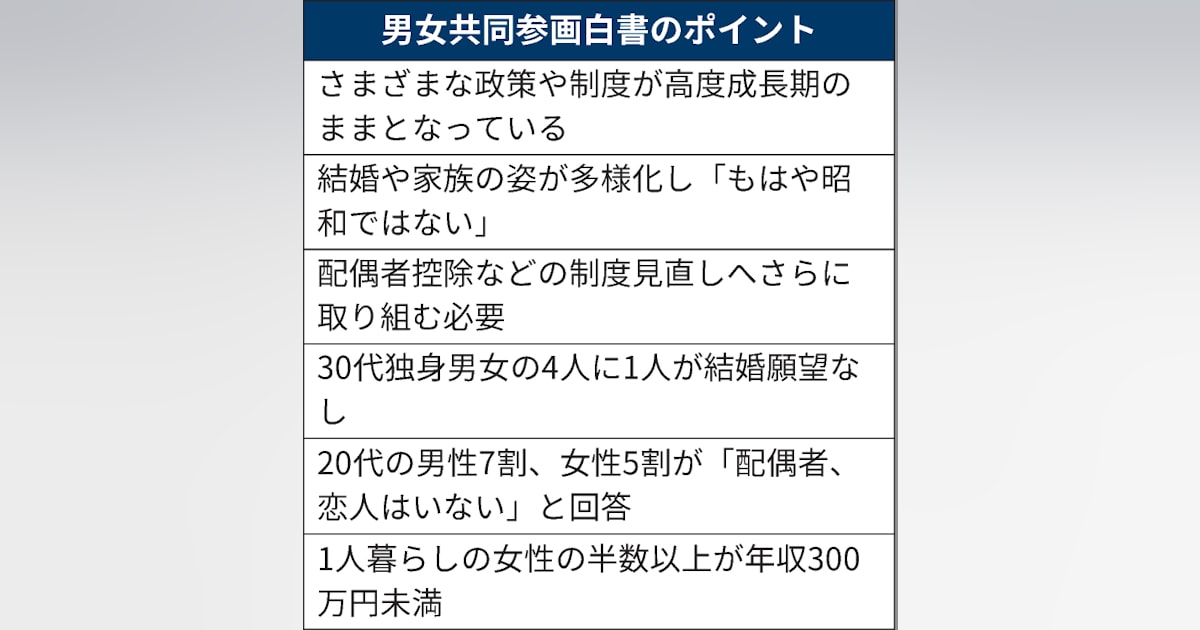 つい先日、政府が『もはや昭和でない』と男女共同白書を出したけど、いまになって「昭和の価値観を引きずってる」と言うわけだ